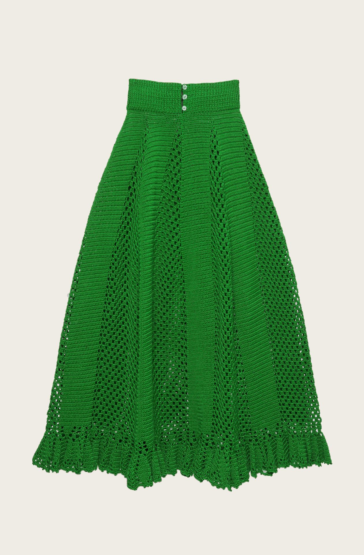 Read moreThe artisanal craftsmanship draws inspiration from the highlights of summer knitwear, enriched with a wavy openwork border for a romantic and feminine touch. Inside, the closure with elastic laces allows for easy wearability and is adorned with precious Mother-of-Pearl buttons. The craftsmanship and comfortable yarn allow the Skirt to adapt to every need.