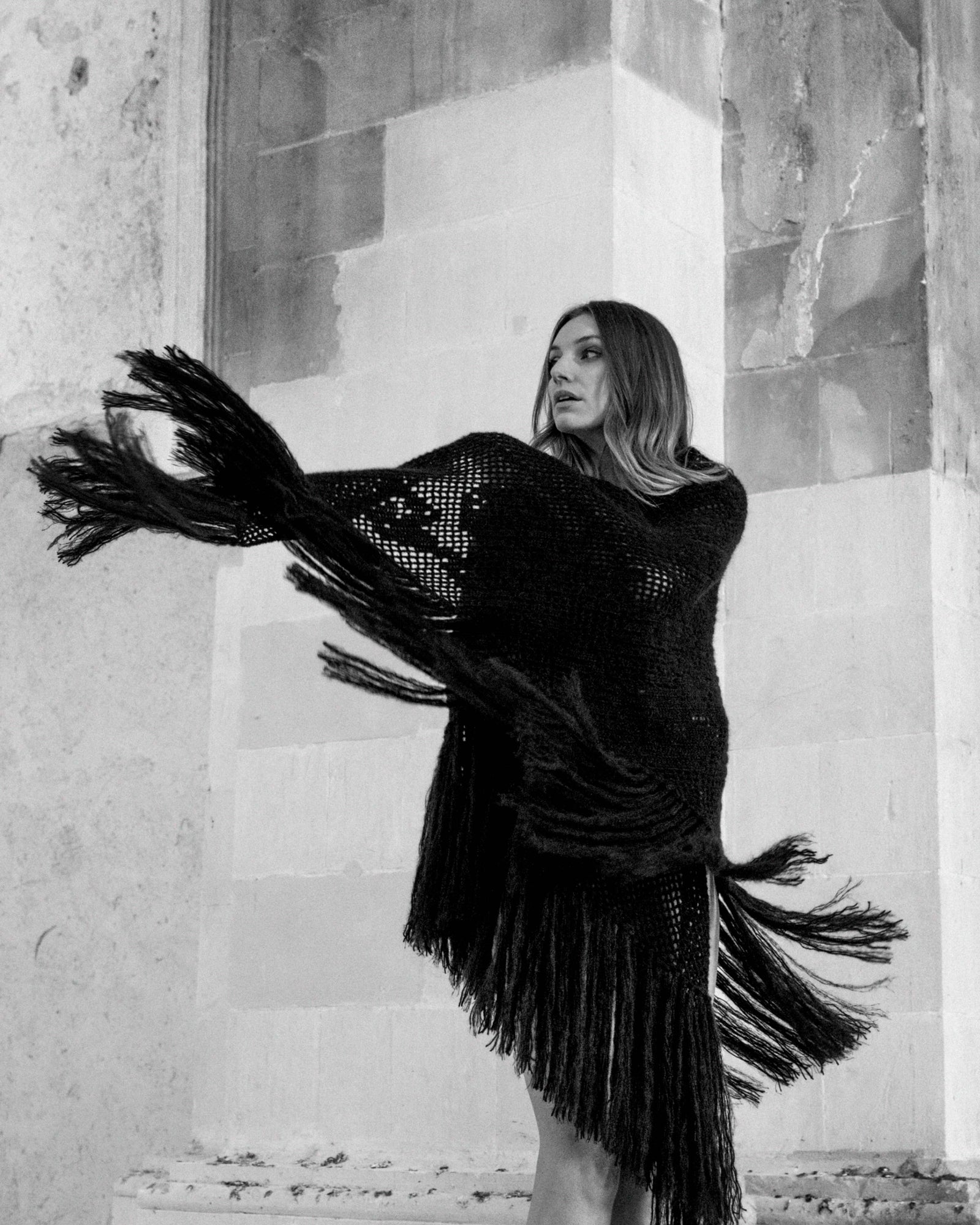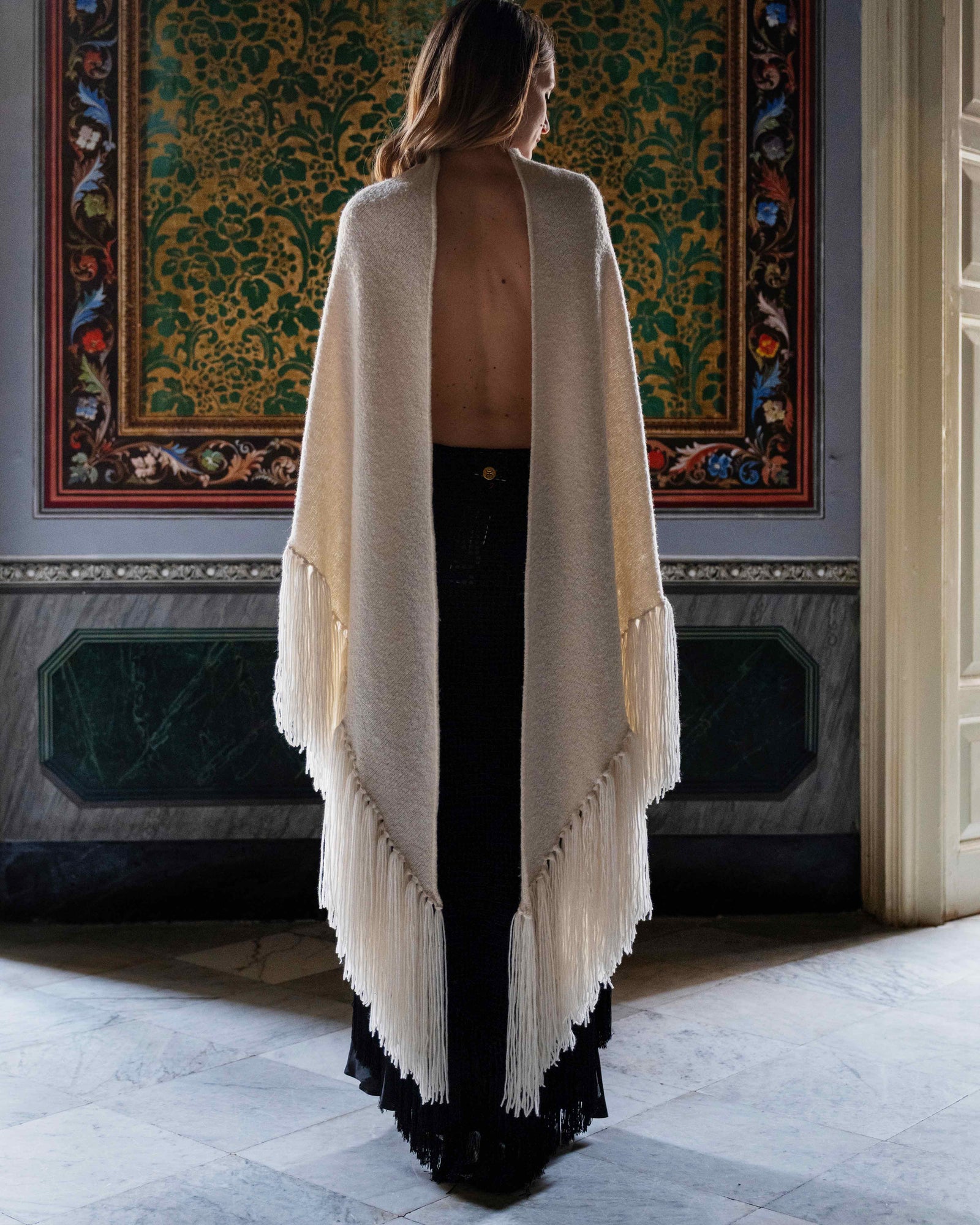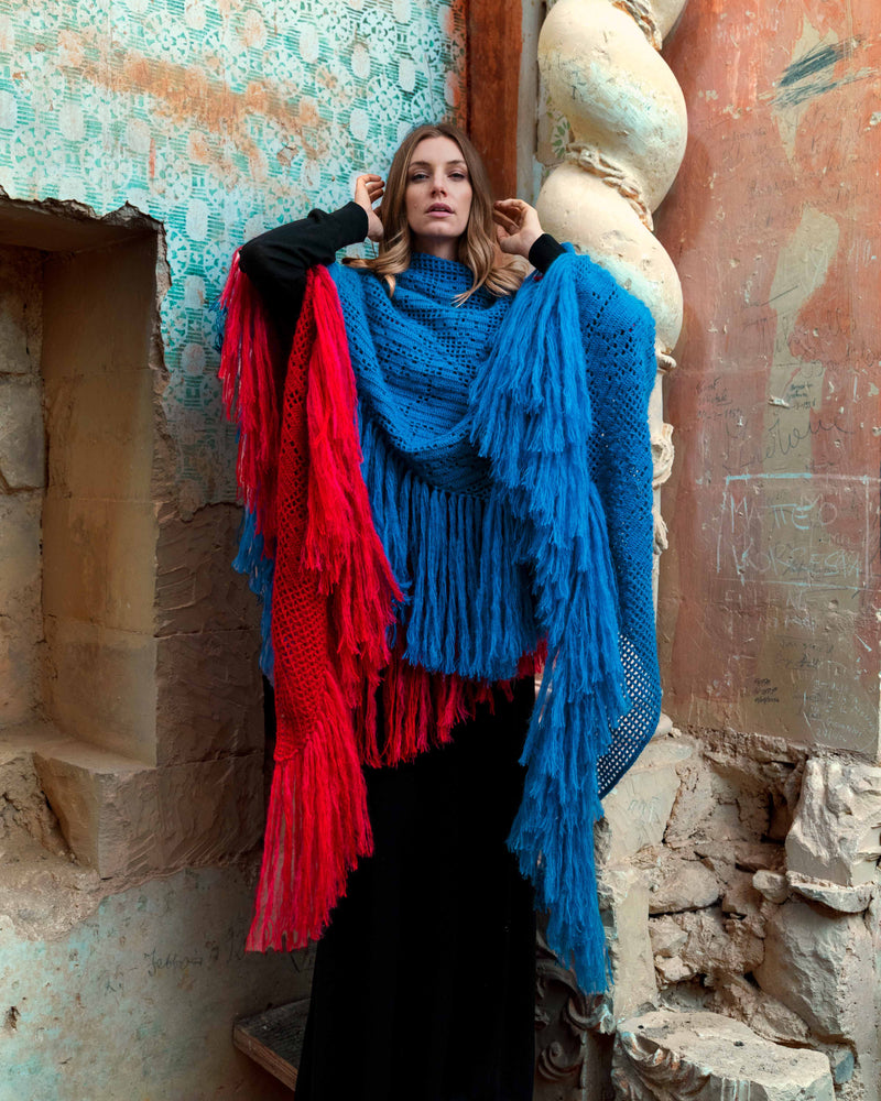 I nostri Scialli sono pensati per uno stile versatile: drappeggiati morbidamente sulle spalle, avvolti per proteggersi dal freddo, sovrapposti su un cappotto, o indossati come una coperta. Non esiste un unico modo. Indossatelo come sentite.
